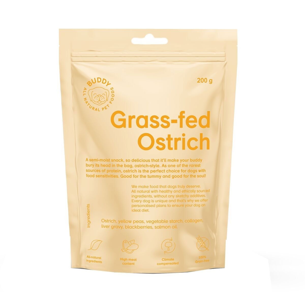 Buddy Petfoods Grass-Fed Ostrich Hundgodis 200 g