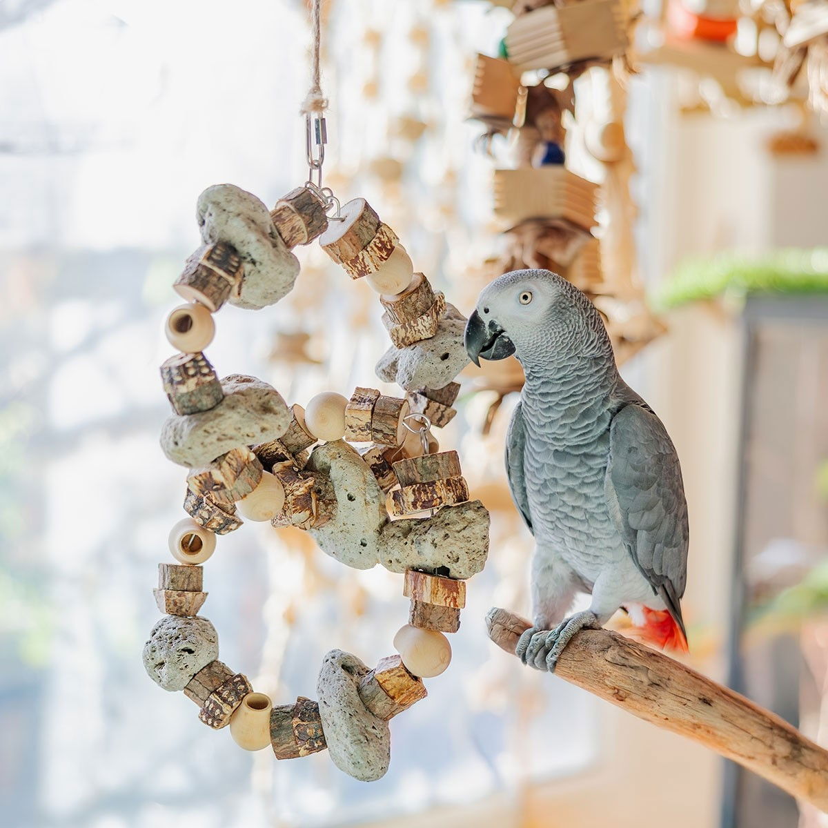 Quapas! Oos Hängande Fågelleksak i Lavasten och Trä 43x20 cm
