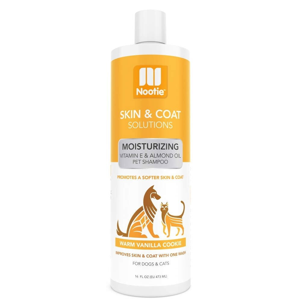- Nootie Fuktgivande Schampo – Vaniljkaka: Ett återfuktande schampo med E-vitamin och mandelolja som ger en mjuk och glansig päls. Har en varm och långvarig vaniljdoft.